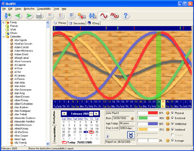 For a skeptical kind of guy, I seem to put a lot of stock in biorhythms. I guess this because I do see a correlation between the squiggly lines and my day-to-day. I don’t check them every day, but on a day unlike today – when elm trees are releasing their own special brand of nerve gas in an attempt to kill me – on a normal day when by all indications I should feel great I still feel like a building has fallen on me, if I check the rhythms – why, yes, lookie there, my physical curve has cratered.