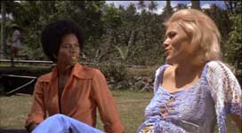 This starts in pretty typical Filipino territory; Cheri is the girlfriend of the head of the Rebels, who gets double-crossed by the villainous team of Sid Haig and Vic Diaz. Cheri and another hardcore rebel, Rosanna Ortiz (who herself has a killer filmography in the Philippines) wind up in jail under the tender care of Gloria Hendry, who is the Vice President In Charge of Torture at the prison (which I believe I recognize from Women in Cages), and knows Rosanna from their earlier prostitute days. MEANTIME, hustler John Ashley has found out Sid Haig killed the Rebels (including Cheri’s boyfriend) for a “MEELION dollars, US currency!” and recruits old pal Hendry to spring Cheri and Rosanna so they can all chase after the bucks.