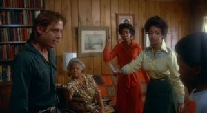 Some actual detective work does bring the police, at last, to the Turner house (not that Kain and company have been particularly stealthy). One policeman finds the white kid’s body in the forest and carries him to the command center, and wouldn’t you know it, he was the Sheriff’s son. One screaming charge at the house later, Kain has put another cop on his kill list. But! The distraction allows our hostages to turn the tables, and now it’s revenge time!