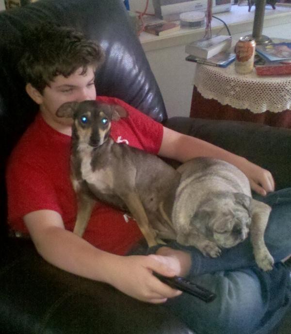 Mavis was the very essence of a lap dog. Whenever I settled down to watch a movie, she would leap into my lap, get settled, and soon be snoring contentedly. Pug snores also belie their relatively small size. Every living thing in the house at that time snored, so she fit right in. I didn’t mention to my wife that her snores sounded just like Mavis’, because I’m not an idiot. Max took Mavis into his bedroom every night. He didn’t seem to mind the snoring. Swear to God, kids can sleep through anything.