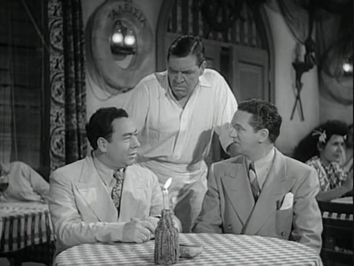 Zombies on Broadway introduces us to the comedy team of Wally Brown and Alan Carney, who are pretty much in the mold of Abbott and Costello, though Brown’s Jerry Miles is more sympathetic than most of Bud Abbott’s screen characters (Brown and Carney were, in fact, known as “RKO’s answer to Abbott and Costello”). The two have been hired as press agents for Ace Miller (Sheldon Leonard), a gangster who’s gone semi-legit and is opening a voodoo-themed night club called The Zombie Hut. Brown and Carney have been doing a bang-up job on the PR, but they’ve made two mistakes…