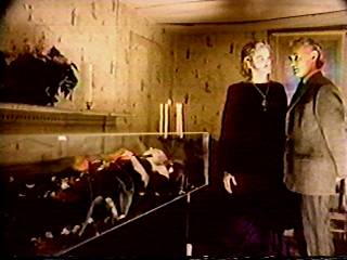 These “blood farmers” are a cult of druids calling themselves “Sangroids”. They’ve apparently done away with a family in a remote farmhouse while searching desperately for the extremely rare bloodtype that will revive their Queen (who lies in repose in a glass case) before the stars match up for the last time and the “Prince of Darkness” (they’re pretty Catholic Druids) comes for them all. They do this by injecting some sort of drug into their victims; if the unfortunate is not the Chosen Type, it will cause their blood cells to multiply exponentially, which is okay, because Sangroids drink blood on a regular basis. They just hook up the non-Chosen to a siphon and drain them, leading to much overacting.
