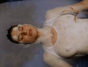 Oh, hell, SPOILER ALERT FOR A 30 YEAR OLD MOVIE. This is, as you figured out three minutes after the opening credits, Kim’s guided dream, and she actually manages to make it to her own death. In the isolation tank lab, everybody congratulates her on her fine work, but Kim isn’t sure she’s actually awakened. In a nicely Bava-esque closer, it seems that she hasn’t, and may not.