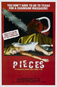 If you know me at all, you know that I hate slasher movies. Hate them with the heat of a thousand suns. Hate them with a passion I usually reserve for licorice candy and overlong meetings. I hate hate hate them. Yet here I am watching Pieces, which is the platonic ideal of everything I hate about them. Not for nothing is its tag line “It’s exactly what you think it is!”