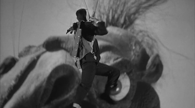 Legend has it that the original plan was have Ray Harryhausen provide a stop-motion Claw, which proved too expensive for Katzman’s taste. He outsourced the work instead to a Mexican puppet maker for the lordly sum of 50 bucks, and there was ever an illustration for You Get What You Pay For, this monster is it. (also didn’t stop Katzman from lifting clips from Harryhausen’s Earth vs the Flying Saucers)