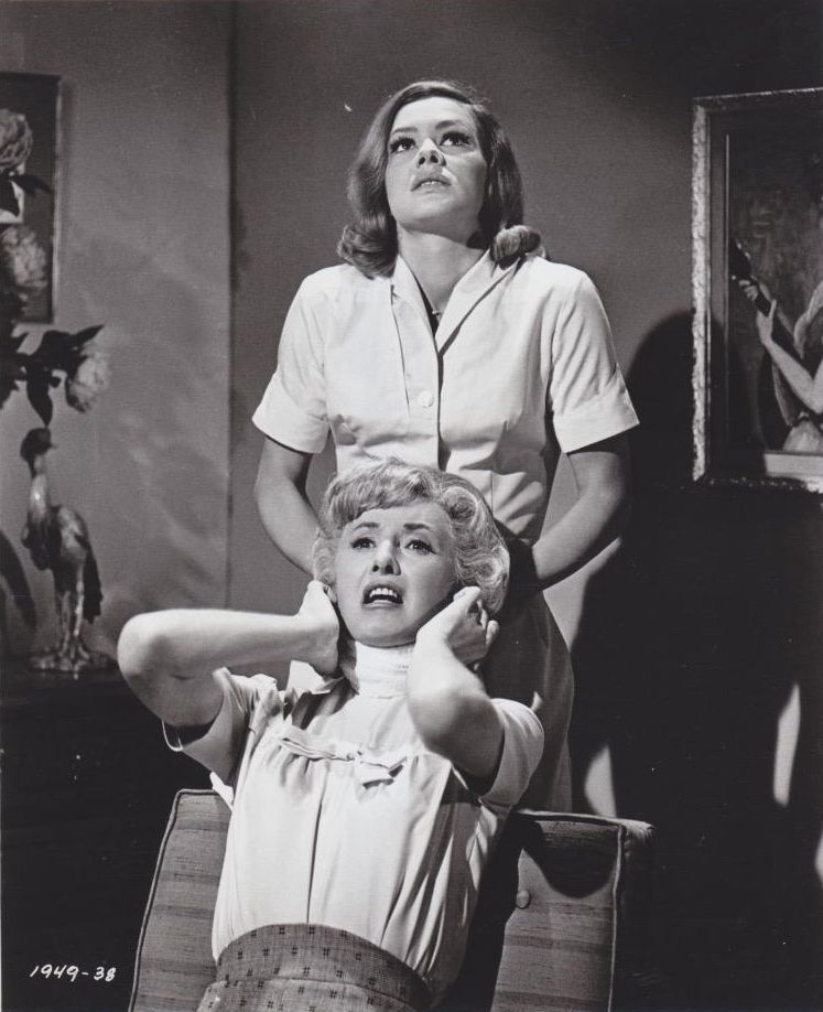 After the funeral, Irene has a nightmare about the explosion and seeing Howard’s horribly burned (for 1964) face. She then makes the decision to move back into the small apartment in the back of her hairdressing salon until she can sell the house. Changing locations doesn’t end the dreams, though; her imaginary lover (Lloyd Bochner) visits once more in the night, and every night thereafter. Then Burned Howard starts showing up, too, and soon people are dying in real life.