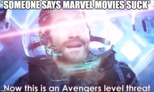 Now, before we get into the meat (lol) of that statement, I feel I should address the elephant in the room (hi, elephant!) Yes I have noticed that over the time Marvel movies have increasingly become the pariah of social media. I get it, you’re tired of superhero movies. Totally understand. I was tired of slasher movies, zombie movies, and vampire movies, but they still kept making them. Attempting to defend Marvel movies apparently puts me in the ranks of anti-cinema barbarians.