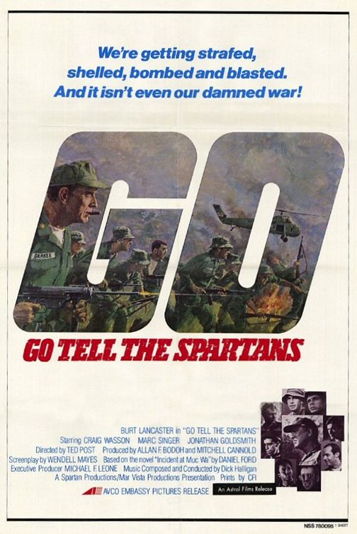 Go Tell The Spartans has all the distinct tropes of what will constitute the Vietnam movie: the nighttime attacks, the attempts to understand and reach out to the native population, the betrayals that result from such attempts, the inability of the Western war machine to deal with a conflict that was so markedly different from any recent war. It manages to trot out all these and make a pretty decent war movie besides. Lancaster is terrific, and special kudos to first-timer Marc Singer as Barker’s executive officer and Craig Wasson as the mysterious draftee who “sure has a way with the dinks”. Also along are Evan Kim as the number one interpreter and chief torturer, “Cowboy” (man, Evan Kim should have had a much bigger career than he wound up with) and the always welcome James Hong, as a South Vietnamese soldier who bonds with Wasson despite the fact that the only English he knows is “A okay!”