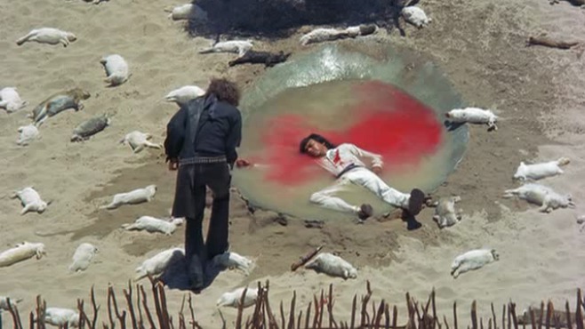Like The Holy Mountain – a Jodorowsky movie I much prefer – a spare synopsis is not going to even begin to replicate the experience of actually seeing the movie. Jodorowsky’s imagery is not as outlandish here, but it is still lush and plentiful. A small town massacred by the Colonel, where there is so much blood in the streets it looks like rain puddles. The grave of the first Master becomes a beehive. The third master lives in a corral of rabbits, who start keeling over dead as El Topo approaches. A church where the worship service is composed of the congregation playing Russian Roulette. It goes on and on to a dizzying, violent end that makes a little more sense than The Holy Mountain, but only a little.