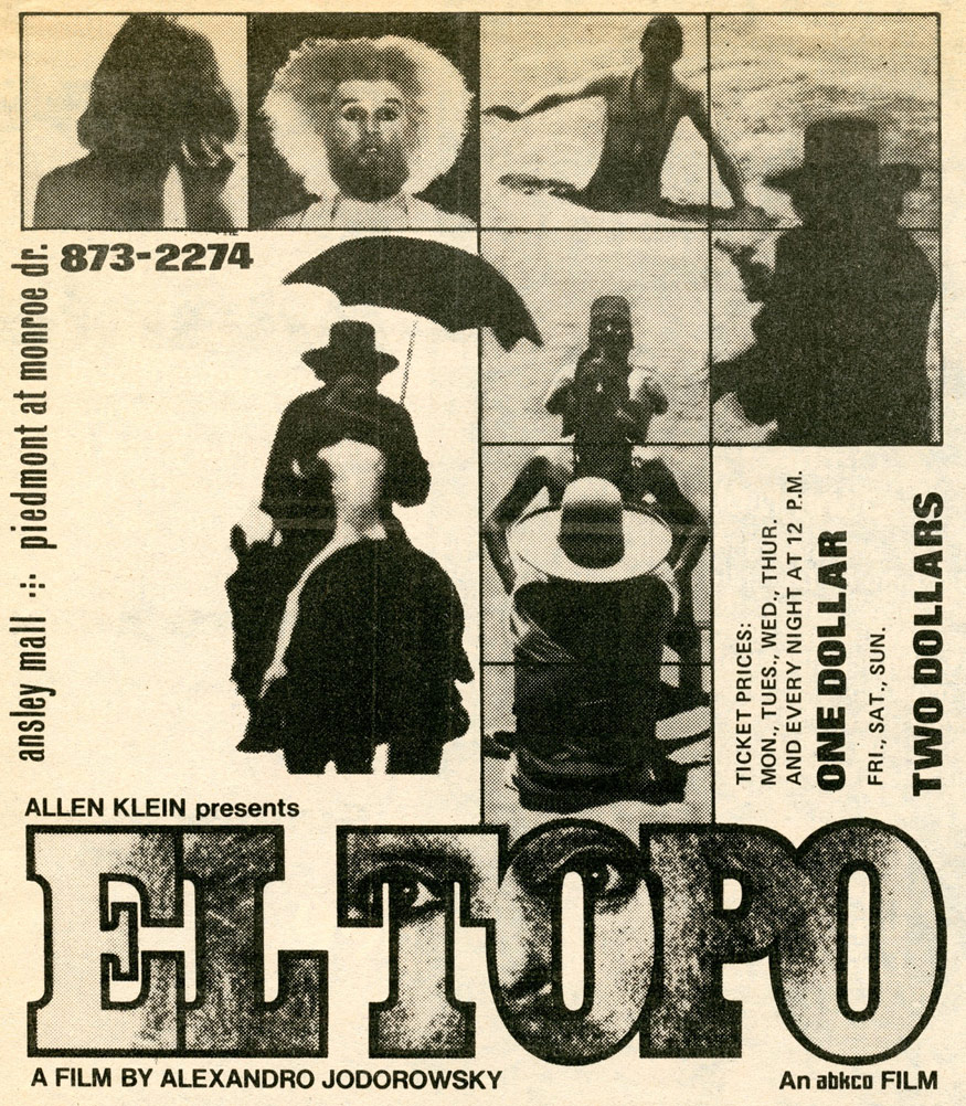 It was either sheer perversity or sheer traditionalism that made me hit “Play” on El Topo at midnight. This is the movie that single-handedly started the Midnight Movie phenomenon, a phenomenon that even hit my teenage Texas town, which had a large college population. My midnight movies usually ran to Amicus double features or an amazing night with all four Beatles movies in a row, but their ancestry can be traced to El Topo, John and Yoko, and Beatles manager Allen Klein, who is the Abkco Films you see at the very beginning.
