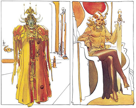 I mentioned “spiritual warrior” earlier, and that is precisely how Jodorowsky viewed his collaborators. His movie wasn’t just going to change movies, it was going to change viewers’ very consciousness. Jean Giraud, aka the amazing French comic artist Moebius, was his camera from the very beginning, dashing out storyboards and costume designs at breathtaking speeds. Douglas Trumbull, fresh off 2001 and Silent Running, was turned down for not being ideally spiritual, and a chance viewing of Dark Star netted the next warrior: Dan O’Bannon.