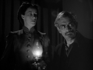 The Devil Commands is directed by Edward Dmytryk early in his career – he’d later go on to better known fare like Back to Bataan, The Caine Mutiny, and Warlock. His direction is crisp and clean, and he wisely spends most of his camera time on Karloff and Revere. Karloff is his usual greatness at a role in which he excelled – an utter madman whose mania is absolutely understandable. Even when he is suggesting something dreadful, he seems considerate and caring, and by the final act of the picture he is visibly tortured by the terrible things he’s done. Anne Revere pulls off the neat trick of being a match for Karloff – her Mrs. Walters is one of the great Lady Macbeths of the screen, willing to cut through anything and anybody to make sure Blair will produce the breakthrough that will be her road to riches.