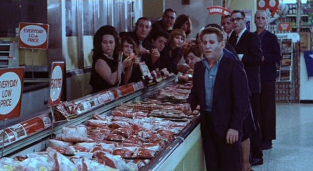 (Another odd note is… oh, ahem, SPOILER ALERT …when Joy’s character buys it, she’s in a movie theater that slowly fills up with zombified townspeople, a chillingly effective scene. Though the movie she’s watching is supposed to be Kiss Tomorrow Goodbye, it’s actually Gone With the West, also known as Little Moon and Jud McGraw, which stars Sammy Davis Jr., James Caan and Stefanie Powers. That couldn’t have been cheap to license. It also has a release year of 1975, so I have no earthly idea of what the hell is going on here, appropriately enough.)