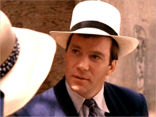 There are some puzzling additions, however. The murder of an extorting dancer, handled obliquely in Titian is now replaced by a bizarre stabbing scene in which only the slightest of efforts was made to match the actors – the costumes are close, but that’s about it (nice work is done finding similar architecture in Venice, California, though). The stabbing is followed by the murderer laboriously carrying the body down long stretches of stairs – in broad daylight – while the camera shows blood dripping on the steps. As the killer is supposedly wearing Magee’s white linen suit – which remains spotless – this becomes egregious rather quickly. He then loads the body into a rowboat and dumps the body in the middle of a crowded bay. It is still daylight.