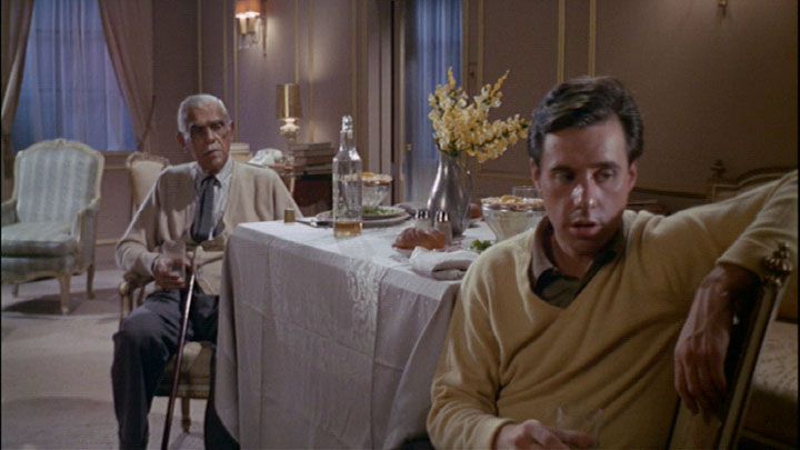 The name of the game here is padding, so yet another actor becomes the black-clad vampire to chase yet another woman through California scenery to the tune of nearly ten minutes. There is, apropos of next-to-nothing, a lengthy dance scene on a beach, but most remarkable of all is the return of that extorting dancer from Titian and Portrait, and Patrick Magee – absent except for a freeze frame in Blood Bath. Campbell and Magee have been re-dubbed in these scenes to manufacture an entirely new subplot about cheating wives and avenging husbands. All this manages to bring Track up to the requisite 82 minutes, but it does the overall movie no favors whatsoever.