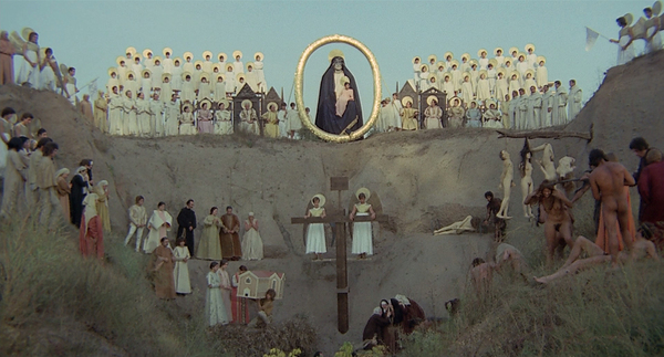 I haven’t even mentioned the amazing locales Pasolini found, vistas that he could pan over without much in the way of obvious modernity. It’s a handsome picture, and I wish Pasolini had not been so brutalized by a carnivorous culture that fed upon the very thing he despised, commercialism. I wish this phase of his career had lasted longer. What could he have said with more time? As it is, we must be satisfied with what we have. Now I’m fascinated, and will be seeking out his earlier works. And I think now that I have context, I can finally see Salo and meet it on its own terms.